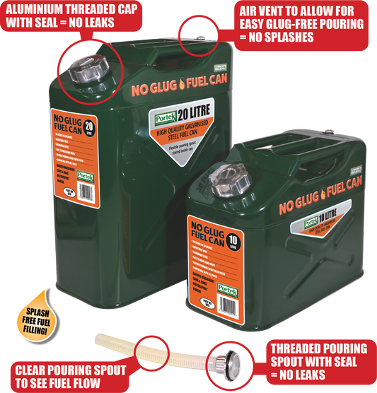 Portek No Glug Fuel Can 10L