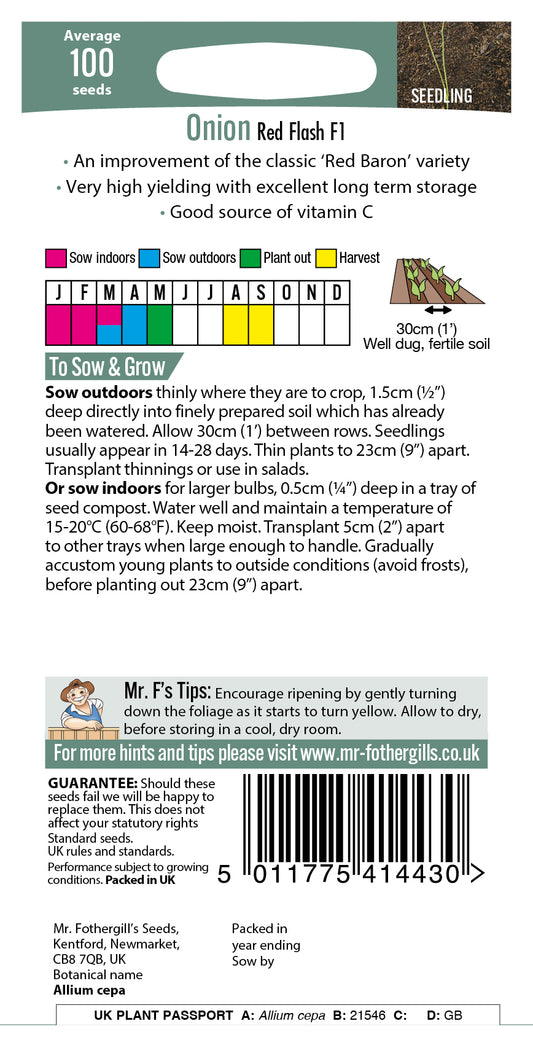 Mr Fothergill's Vegetable Seeds Onion Red Flash F1