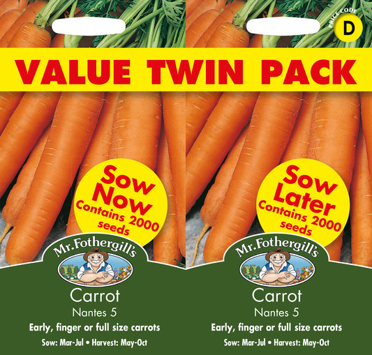 Mr Fothergill's Vegetable Seeds Carrot Nantes 5 Bumper Pack - 4,000 Seeds