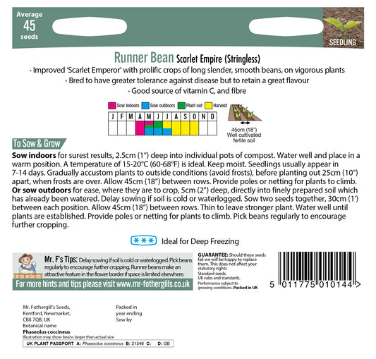 Mr Fothergill's RUNNER BEAN Scarlet Empire String
