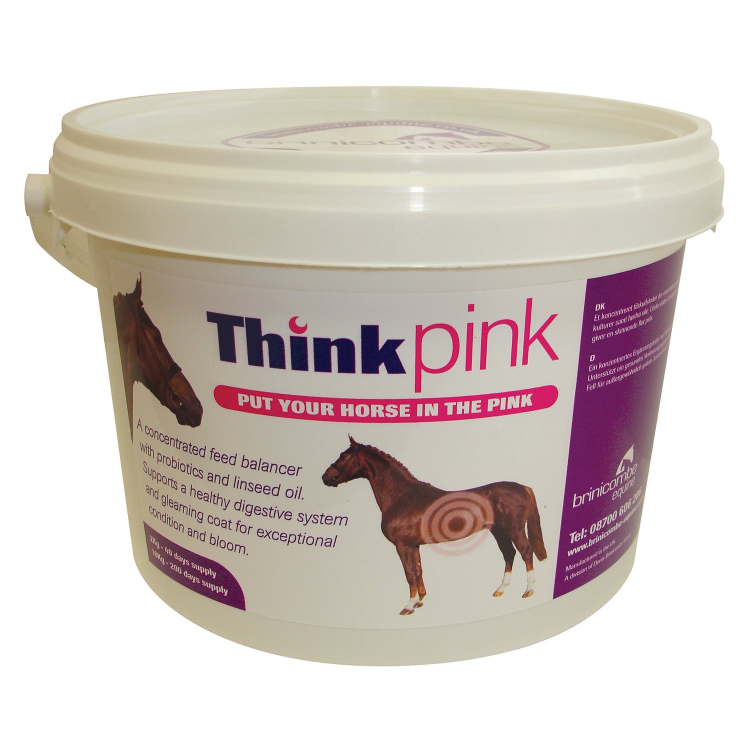 Think Pink will ensure your horse is at the very pinnacle of health whilst remaining incredibly cost effective to feed. The formula includes broad spectrum vitamins and minerals, specially selected probiotics for a healthy digestive system, and pure linseed oil for coat condition. Fed everyday, Think Pink will help to maintain the natural micro-flora of the gut for optimum digestion and health, balance the diet and ensure an optimum supply of essential nutrients to help promote natural condition, vitality and a glossy coat.
