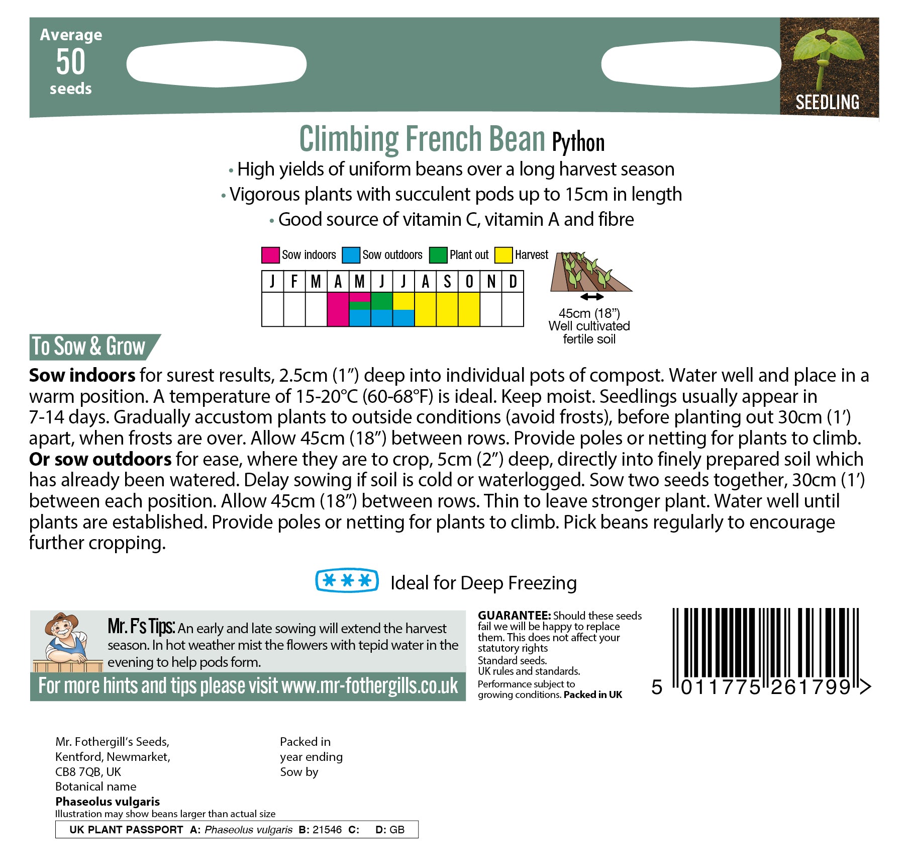 Climbing Bean Python Seeds from Mr Fothergill's Seeds and Plants.