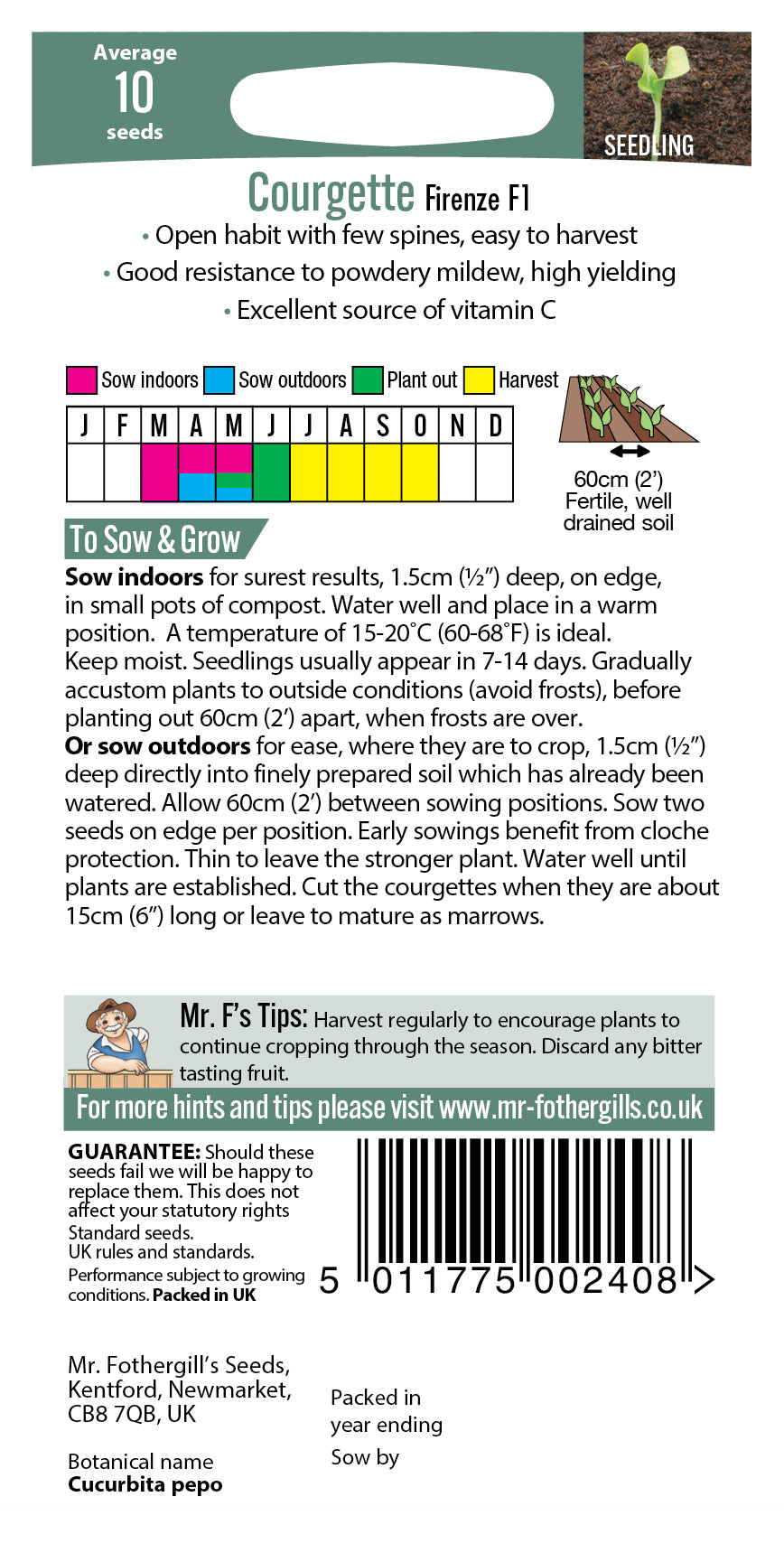 Mr Fothergill's Vegetable Seeds Courgette Firenze F1 - 10 Seeds
