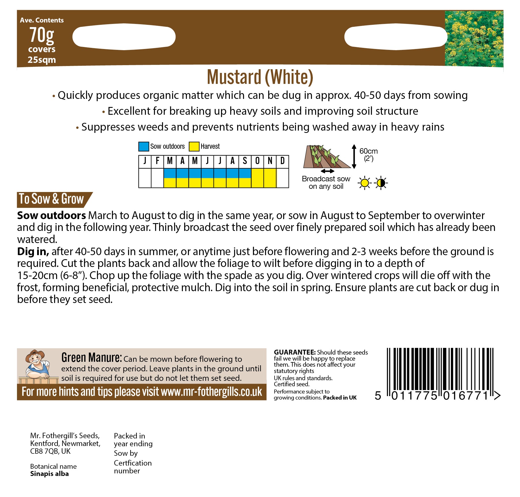 Mr Fothergill's Vegetable Seeds Green Manure Mustard White - 70g Covers 25sq.m