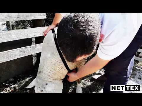 3. With the breast plate held in position, fasten the girth strap around the ram, ensuring that the fixings rings are evenly spaced.