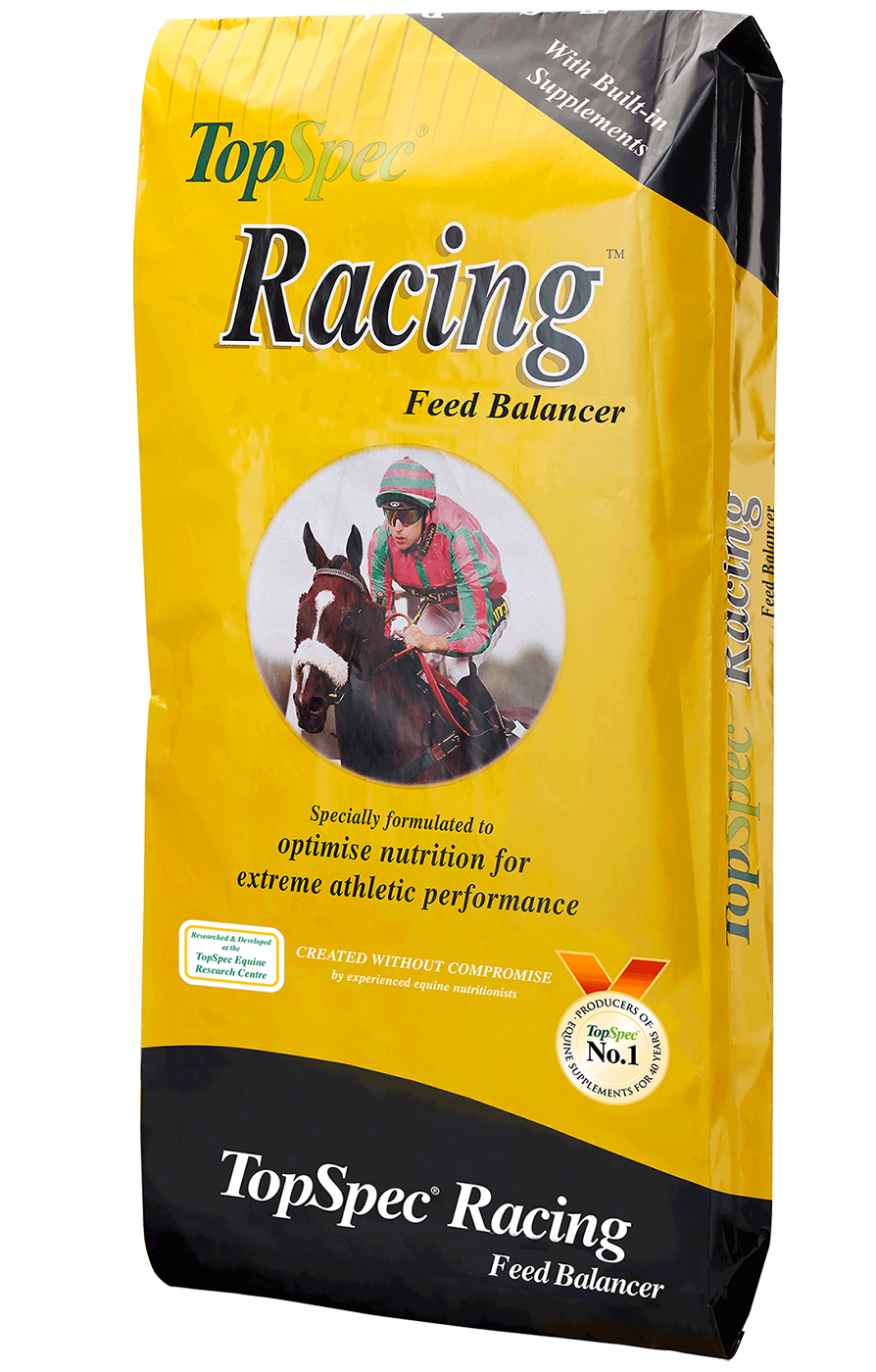 TopSpec Racing Feed Balancer is designed for race horses and point-to-pointers fed a diet including a significant amount of oats.