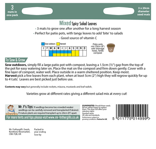 Mr Fothergill's Salad Seeds MAT MIXED Spicy Salad Leaves