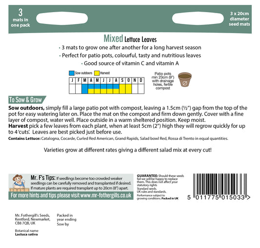 Mr Fothergill's Salad Seeds MAT MIXED Lettuce Leaves